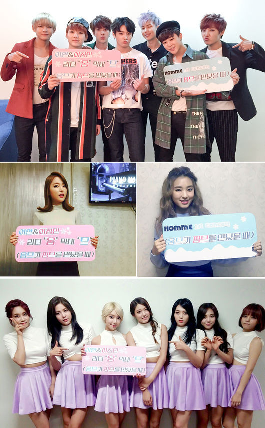 공개된 사진 속 방탄소년단은 '옴므 퍼스트 콘서트: 옴므가 팜므를 만났을 때'라고 적힌 판넬을 들고 옴므의 콘서트를 홍보하고 있는 모습이다. 씨스타 보라와 AOA, 홍진영 등 또한 콘서트 소개 문구가 적힌 판넬을 들고 환한 미소를 지어보이고 있다.