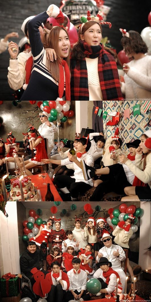 공개된 사진 속 크레용팝, 케이머치(K-MUCH), 단발머리, 짠짠 멤버들은 크리스마스트리, 풍선, 케이크 등 크리스마스 파티 느낌이 물씬 풍기는 세트장에서 가족적이고 화기애애한 분위기를 선보이며 즐겁고 유쾌한 장면을 연출했다.