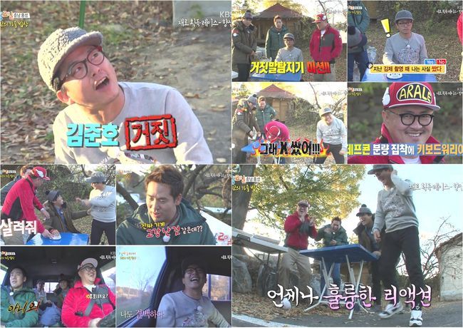 지난달 30일 방송된 '1박2일'에서는 충청남도 홍성으로 정상급 셰프 레이먼 킴-샘 킴과 함께하는 비포 선셋 레이스 2탄 ‘최고의 가을밥상’ 두 번째 이야기가 펼쳐진 가운데, 샘 킴-김준호-차태현-데프콘의 포복절도 거짓말탐지기 타임이 시청자들을 웃음짓게 만들었다.