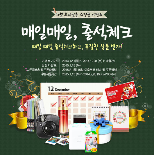 한국후지필름이 12월동안 출석체크 이벤트를 운영한다.
