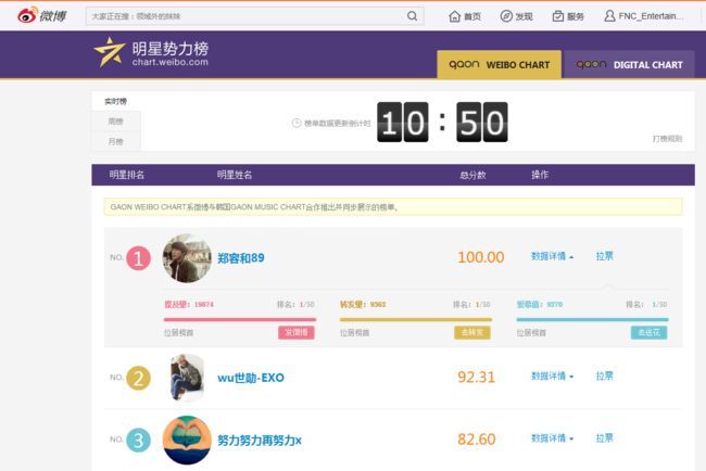 웨이보 내에서 정용화를 언급한 점수인 ‘제급량(提及量)’ 1만9874포인트, 리웨이보 지수인 ‘전발량(量)’ 9362포인트, 팬들이 선물한 꽃의 개수인 ‘애모치(慕)’ 9270포인트로 총점 100%를 기록했다. 3개 항목의 점수를 합산해 순위를 정하는 가온웨이보 차트에서 한국 연예인이 100%를 차지한 것은 정용화가 최초다.