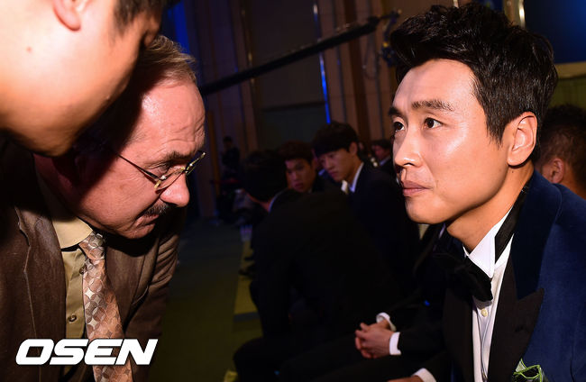 1일 오후 서울 서대문구 홍은동 그랜드힐튼호텔 컨벤션센터에서 열린 '2014 현대오일뱅크 K리그 대상' 시상식, 슈틸리케 감독이 MVP로 선정된 이동국과 이야기를 나누고 있다.
