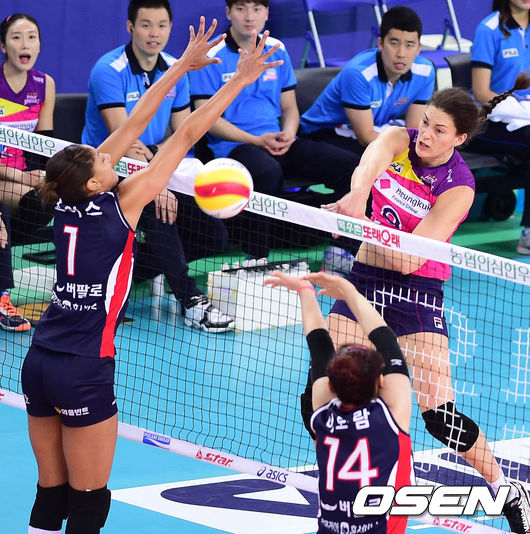 1일 오후 인천 계양체육관에서 열린 '2014-2015 NH농협 V-리그' 흥국생명과 인삼공사의 경기 1세트 루크가 공격을 시도하고 있다.