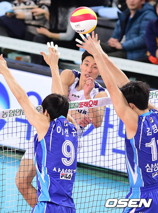 1일 오후 인천 계양체육관에서 열린 '2014-2015 NH농협 V-리그' 대한항공과 삼성화재의 경기 1세트 이선규가 공격을 시도하고 있다.