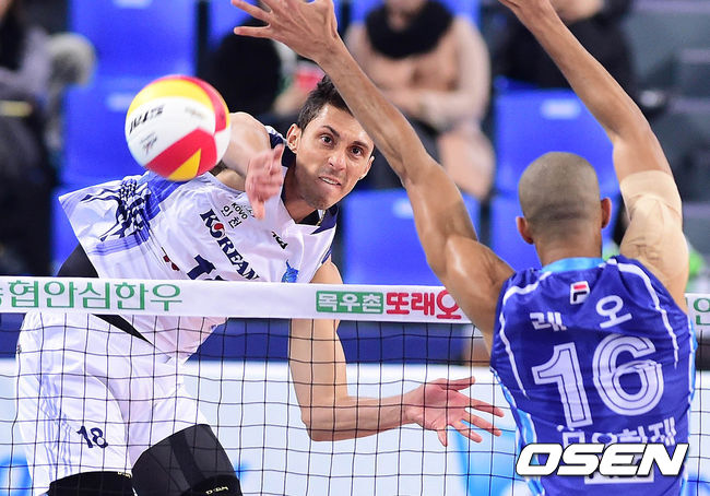 1일 오후 인천 계양체육관에서 열린 '2014-2015 NH농협 V-리그' 대한항공과 삼성화재의 경기 1세트 산체스가 공격을 시도하고 있다.