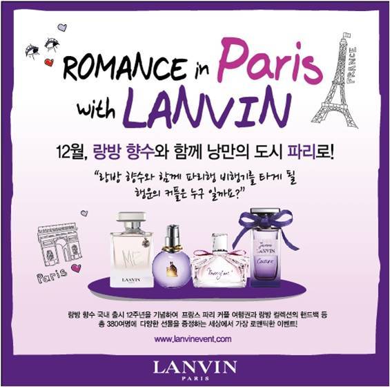 랑방 향수가 국내 출시 12주년을 기념해 실시하는 이벤트는 전국 주요 백화점 내 코익 퍼퓸 매장과 드럭스토어 및 온라인 몰에서 랑방 향수를 구매하는 모든 소비자가 참여 할 수 있다.