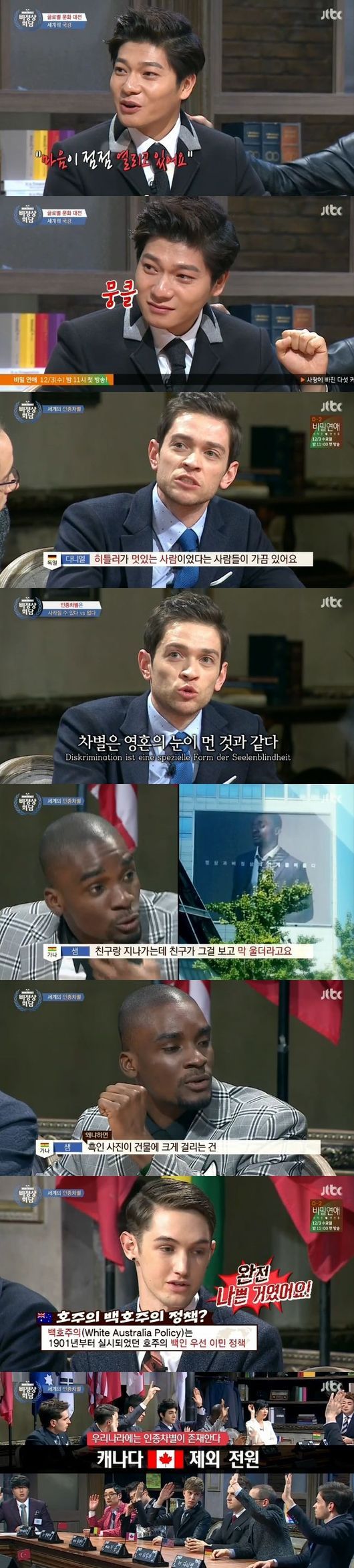 독일 다니엘과 일일 호주 대표 블레어는 각기 자신의 나라에서 있었던, 다소 부끄러울 수 있는 인종차별의 역사를 언급해 눈길을 끌었다. 블레어는 백호주의를 묻는 질문에 대해 “완전 나쁜 거였다. 처음 아시아 인종의 이민을 엄격히 제안하면서 있었던 건데 지금은 당연히 없다 . 법으로 70년대에 폐지했다”고 말했다.