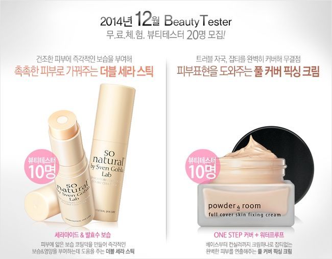 12월 뷰티 테스터의 신제품은 건조하고 거친 피부에 즉각적인 보습력을 높여주는 더블 레이어링 보습광 스틱 “딥 모이스처 더블 세라 스틱(DEEP MOISTURE DOUBLE CERA STIC)”과 베이스부터 컨실러까지 원스텝으로 피부바탕을 연출해주는 “풀 커버 스킨 픽싱 크림 (FULL COVER SKIN FIXING CREAM)”이다.