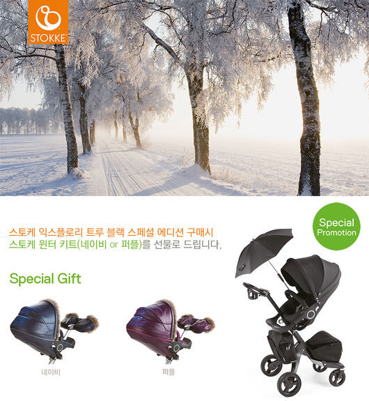 스토케는 지난 11월 출시된 신제품 ‘스토케 익스플로리 트루 블랙 스페셜 에디션’ 구매 소비자 선착순 50명에게 겨울 전용 유모차 액세서리 ‘윈터키트’ (38만 9000원 상당)를 증정한다.