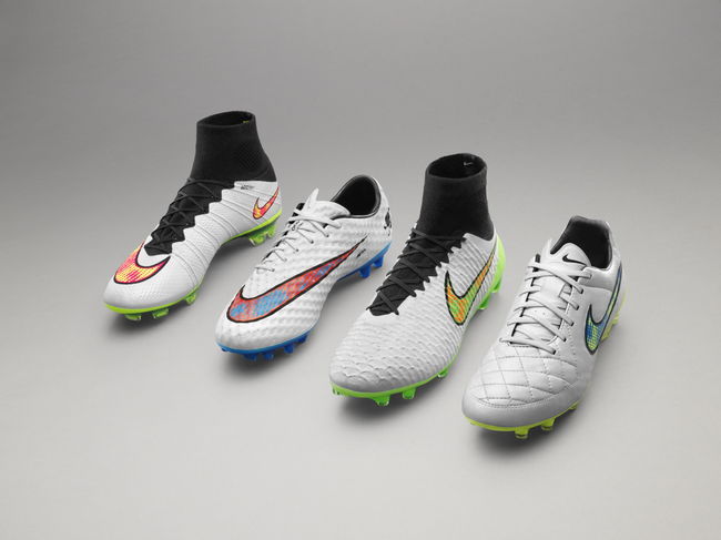 이러한 혁신적인 디자인은 바로 축구와 페스티벌로 대표되는 나라, 브라질로부터 영감을 받았다. 지난 여름 축구 축제의 개최지이기도 한 브라질에서는 신년을 맞이하는 축제에서 참가자들이 클래식한 흰색 의상을 입고 특정한 강조색으로 장식해 각자의 개성을 보여주는 것이 전통이다. 이에, 나이키의 색상 전문가들은 이번 컬렉션의 주 색상인 흰색과 더불어, 신년 축제 전날 밤하늘을 수놓는 화려한 불꽃을 상징하는 현란한 색상들을 축구화 갑피의 스우시 로고에 적용함으로써, 브라질 신년 축제의 열정과 에너지를 고스란히 담아냈다.