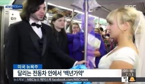 뉴욕 지하철에서 결혼식을 한 이들이 화제가 되고 있다.