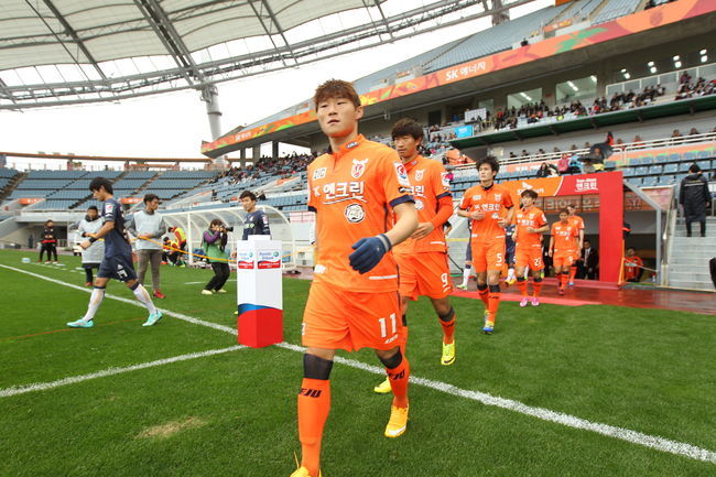 이날 제주는 경기 시작 전 2015시즌 선수단이 착용할 새 유니폼을 주장 김호준과 부주장 송진형이 입고 나와 공개하는 시간을 가졌다.