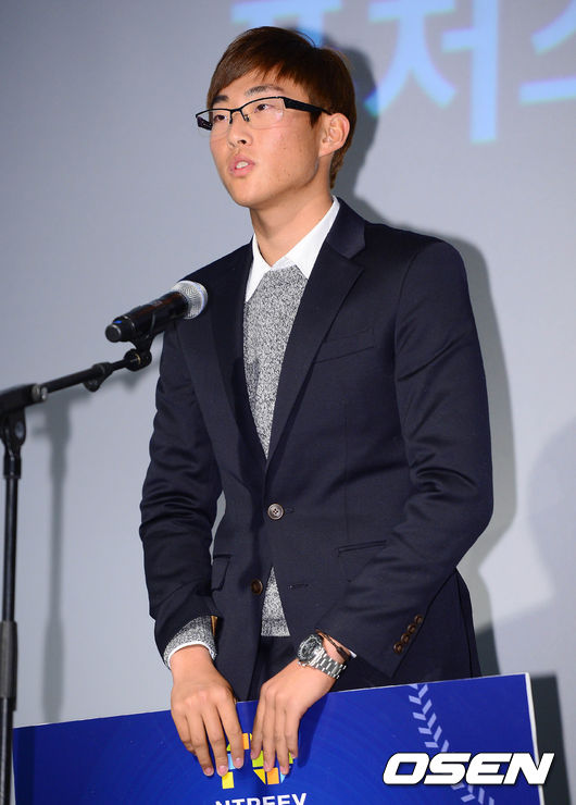 2일 오후 서울 양재동 The-K 호텔에서 열린 한국프로야구선수협회 '플레이어스 초이스 어워드'에서 퓨처스 투수상을 수상한 KT 박세웅이 수상 소감을 말하고 있다.