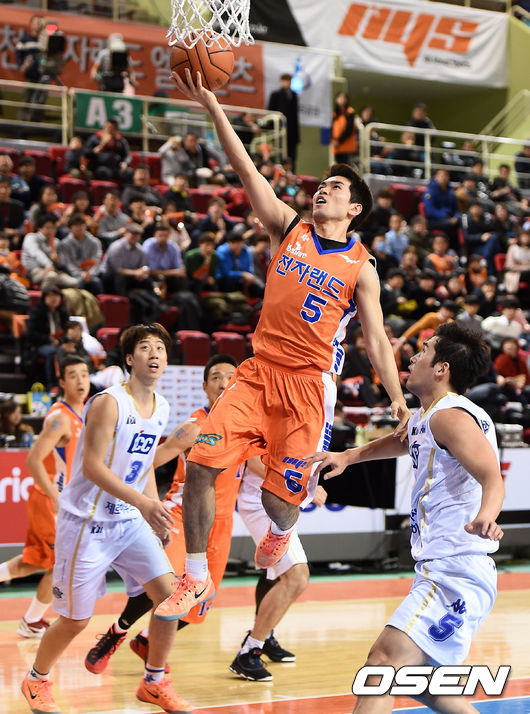 2쿼터 전자랜드 정병국이 레이업슛을 시도하고 있다.