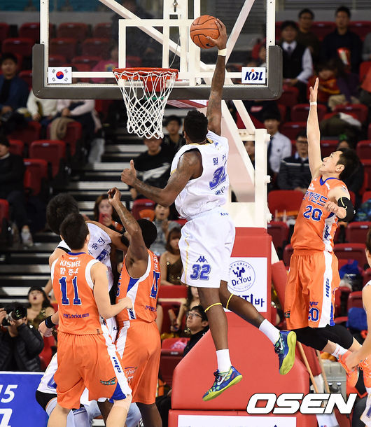 2쿼터 KCC 윌커슨이 덩크슛을 시도하고 있다.