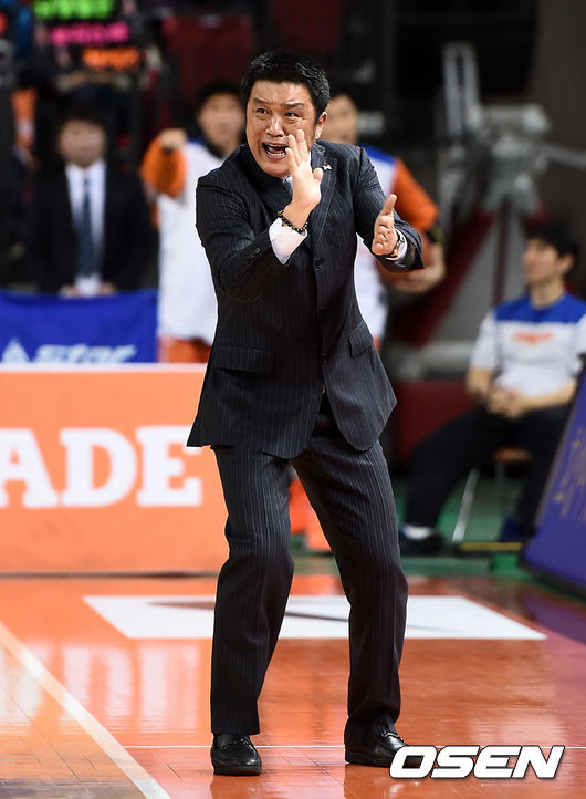 3쿼터 전자랜드 유도훈 감독이 심판 판정에 어필하고 있다.