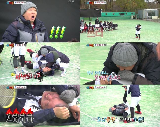하지만 이 공이 강호동의 얼굴로 향하고 말았고 강호동은 얼굴을 부여잡고 쓰러져 눈길을 끌었다.