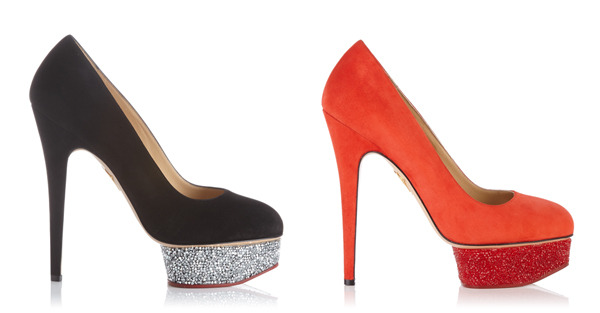 홀리데이 리미티드 에디션 '비주얼드 캡슐 컬렉션'은 대표적인 샬롯 올림피아의 앙코르 라인인 돌리 펌프스와 하트 모양의 플랫폼이 특징인 데비 펌프스의 플랫폼에 풀 스와로브스키를 세팅한 디자인과 블랙 돌리에 골드 장식이 더해진 스파이더 돌리까지 세 가지의 화려한 스타일을 선보였다.