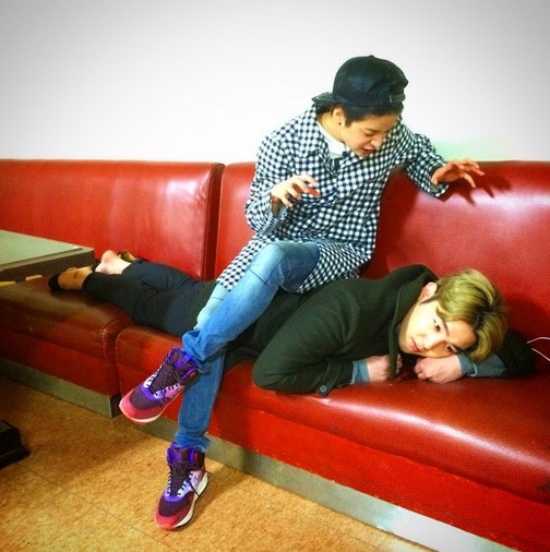공개된 사진 속에는 시무룩한 표정으로 엎드려 누운 강인을 깔고 앉은 채 약 올리는 듯한 포즈를 취하고 있는 엠버의 모습이 담겨있다. 특히 이들은 현실 남매 같은 장난스러운 모습으로 보는 이들의 웃음을 자아낸다.