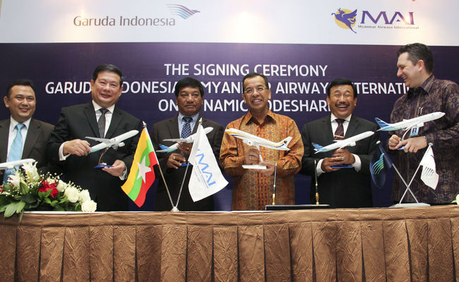 이번 공동운항 협약식에는 에밀샤 사타르(Emirsyah Satar) 가루다항공 회장, 주미얀마 인도네시아 대사 및 주인도네시아 미얀마 대사 등이 참석한 가운데, 에릭 마이어(Erik Meijer) 가루다인도네시아항공 부사장과 시투(Si Thu) 미얀마 국제항공 사장이 서명을 진행했다.