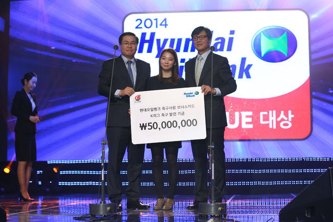 K리그 타이틀 스폰서 현대오일뱅크가 지난 1일 '2014 현대오일뱅크 K리그 대상 시상식'에서 축구발전기금 5000만 원을 전달했다. 이번 축구발전기금은 현대오일뱅크 축구사랑보너스카드 포인트 적립금이다.