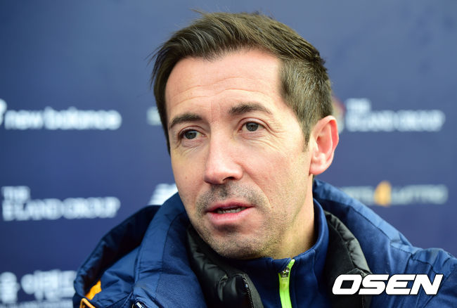 인터뷰하는 서울 이랜드 FC 마틴 레니 감독