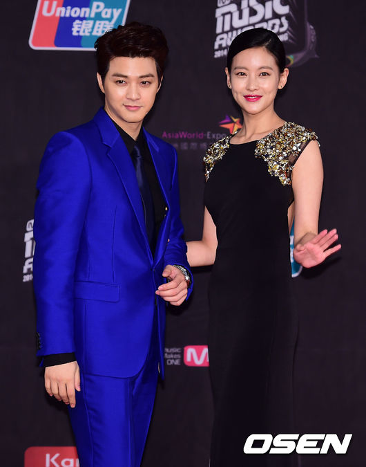 3일 오후 홍콩 아시아 월드 엑스포 아레나(AWE/AsiaWorld-Expo)에서 진행된 '2014 Mnet Asian Music Awards(이하 2014 MAMA)'에서 김지훈과 오연서가 포토타임을 하고 있다.