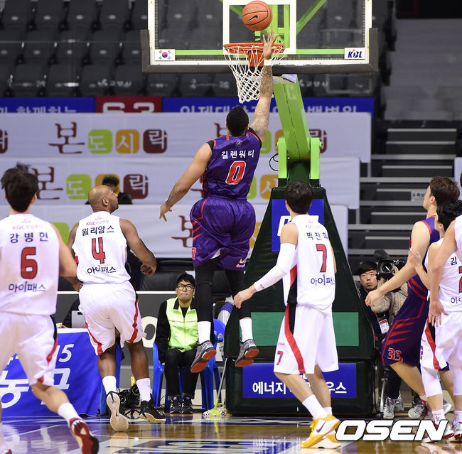 3일 오후 경기도 고양실내체육관에서 열린 '2014-2015 KCC 프로농구 고양 오리온스와 안양 KGC의 경기, 1쿼터 고양 길렌워터가 레이업슛을 성공시키고 있다.