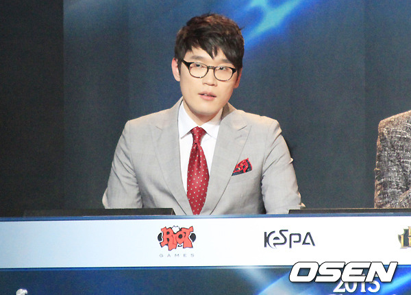 3일 오후 서울 용산 온게임넷 e스포츠 상설경기장에서 '2015 LOL 챔피언스(이하 롤챔스)' 코리아 프리시즌 개막전이 열렸다. 온게임넷 '클템' 이현우 해설위원이 SK텔레콤과 후야 타이거즈 1세트 경기에 대해 이야기하고 있다.