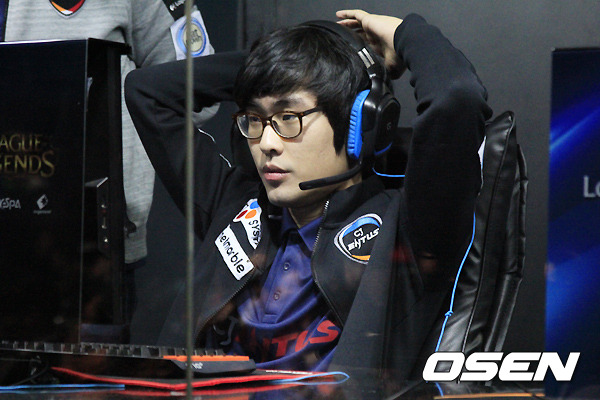 3일 오후 서울 용산 온게임넷 e스포츠 상설경기장에서 '2015 LOL 챔피언스(이하 롤챔스)' 코리아 프리시즌 개막일 두번째 경기 IM과 CJ 엔투스의 경기가 열렸다. 이번 시즌부터 정글러로 포지션을 옮긴 '앰비션' 강찬용이 팀원들과 담소를 나누고 있다.
