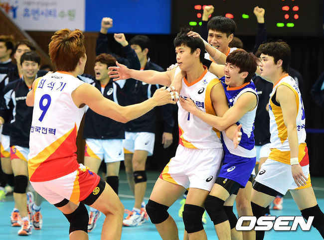 한국전력은 3일 수원실내체육관에서 열린 '2014-2015 NH농협 V-리그' 남자부 OK저축은행과의 경기에서 5세트 혈투 끝에 3-2(19-25, 25-17, 22-25, 35-33, 15-13)로 역전승했다. 승점 2점을 보탠 한국전력(승점 19점)은 3위 대한항공(승점 22점)에 3점차로 따라 붙었다. 반면 OK저축은행(승점 23점)은 다 잡은 경기를 놓치며 2위 수성에 만족해야 했다.
