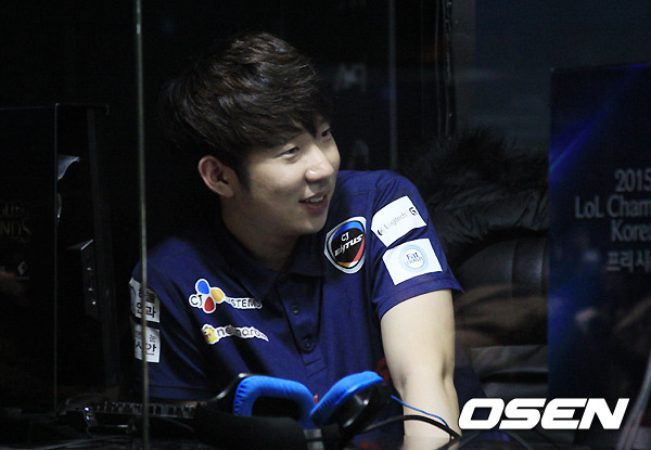 3일 오후 서울 용산 온게임넷 e스포츠 상설경기장에서 '2015 LOL 챔피언스(이하 롤챔스)' 코리아 프리시즌 개막일 두번째 경기 IM과 CJ 엔투스의 경기가 열렸다. 1세트를 문도박사로 활약한 '샤이' 박상면이 환한 미소를 짓고 있다.