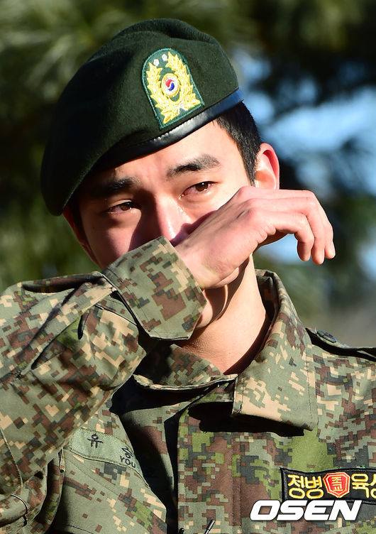 이날 그는 눈물을 흘리며 전역식에 등장해 " 2013년 3월 15일에 입대했는데 제대로 인사 못드려 죄송하고 아쉬웠다. 전역할 때는 인사드리게 될 수 있어서 감사하고 영광이다"고 전역 소감을 밝혔다.