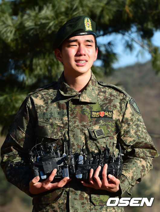이날 그는 눈물을 흘리며 전역식에 등장해 " 2013년 3월 15일에 입대했는데 제대로 인사 못드려 죄송하고 아쉬웠다. 전역할 때는 인사드리게 될 수 있어서 감사하고 영광이다"고 전역 소감을 밝혔다.