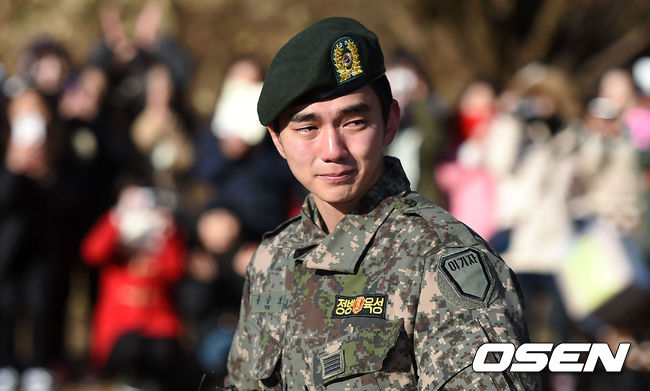이날 그는 눈물을 흘리며 전역식에 등장해 " 2013년 3월 15일에 입대했는데 제대로 인사 못드려 죄송하고 아쉬웠다. 전역할 때는 인사드리게 될 수 있어서 감사하고 영광이다"고 전역 소감을 밝혔다.