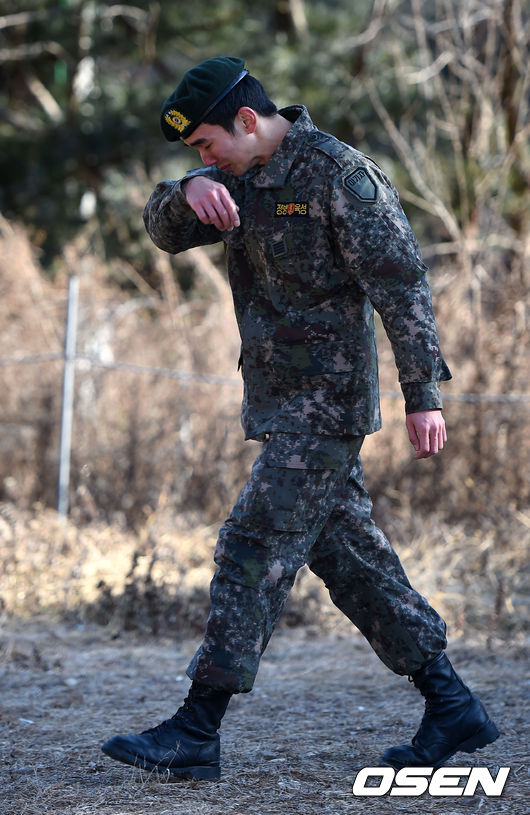 이날 그는 눈물을 흘리며 전역식에 등장해 " 2013년 3월 15일에 입대했는데 제대로 인사 못드려 죄송하고 아쉬웠다. 전역할 때는 인사드리게 될 수 있어서 감사하고 영광이다"고 전역 소감을 밝혔다.