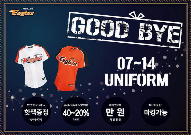 또한 7일 진행되는 독수리한마당 행사에서는 기존 유니폼을 할인 판매하는 '굿바이 유니폼 프로모션'을 진행한다. 유니폼을 포함한 모자, 방한용품 등을 20~40% 할인된 저렴한 가격으로 구매할 수 좋은 기회로 판매는 대전구장 독수리한마당 행사현장에서 진행한다.