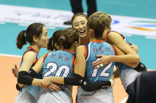 GS칼텍스는 4일 오후 평택이충문화체육관에서 열린 NH농협 2014-2015 V리그 여자부 KGC인삼공사와의 홈경기서 세트스코어 3-2(25-21, 25-22, 20-25, 24-26, 15-11)로 힘겨운 승리를 거뒀다.