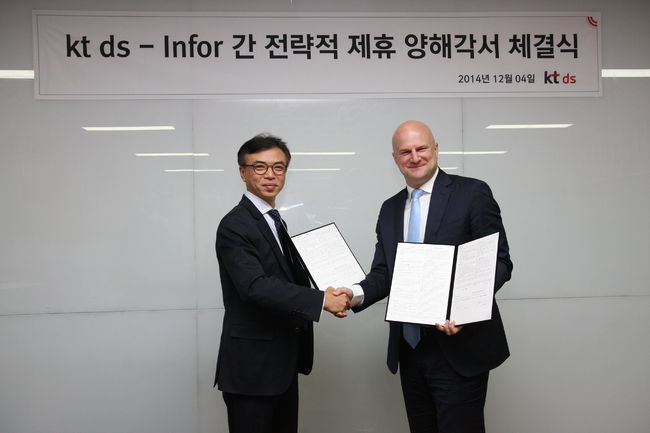 KT그룹의 IT서비스 전문회사 KT DS는 지난 4일 기업용 솔루션 SW 전문기업인 Infor(인포)와 포괄적 협력을 위한 전략적 제휴 양해각서에 서명하고 국내 IT 매니지드(Managed) 서비스 시장 확대를 추진한다고 5일 밝혔다.