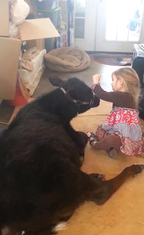 소녀와 송아지의 우정을 담은 영상은 최근 온라인 상에서 화제를 모았다. 미국 펜실베니아주에 거주하고 있는 어린 소녀가 송아지와 우정을 과시한 것.