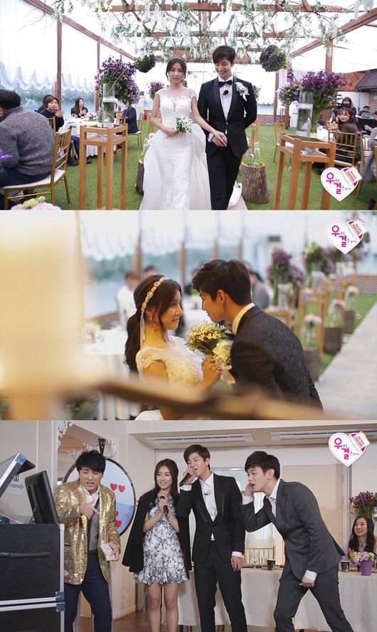 두 사람은 최근 촬영을 통해 결혼식을 진행했다. 제작진에 따르면 결혼 행진곡이 울리고 서로의 손을 꼭 잡은 채 입장을 시작한 송재림,김소은 커플은 발을 맞춰 버진 로드를 걸으며 긴장한 표정이 역력했다. 하지만 하객들 앞에 선 두 사람은 사회자 김민교의 진행에 따라 눈빛 교환부터 서로에게 충실할 것을 맹세하는 혼인서약지 진지한 자세로 임해 실제 결혼식을 방불케 했을 정도였다고.