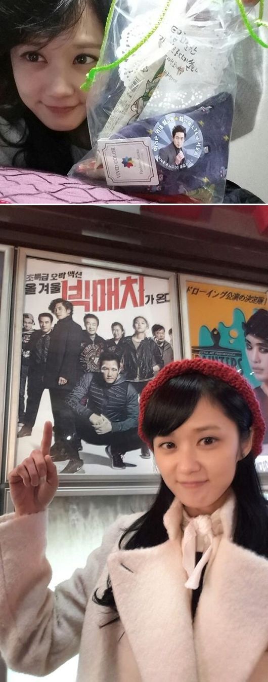 공개된 사진 속에는 신하균의 팬들이 정성스레 준비한 선물을 든 채 미소를 짓고 있는 장나라의 모습이 담겨있다. 이어 공개된 사진에서는 신하균이 출연한 영화 ‘빅매치’의 포스터를 가리키고 있는 장나라의 모습이 귀여움을 자아냈다.