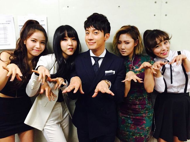 걸그룹 마마무가 개그맨 허경환과 콜라보레이션 무대를 꾸미는 가운데, 함께 한 ‘뮤직뱅크’ 인증샷을 공개했다.
