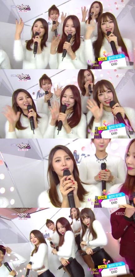 EXID는 5일 오후 생방송된 KBS 2TV '뮤직뱅크'에 출연해 무대에 앞서 간단한 인터뷰를 진행했다.