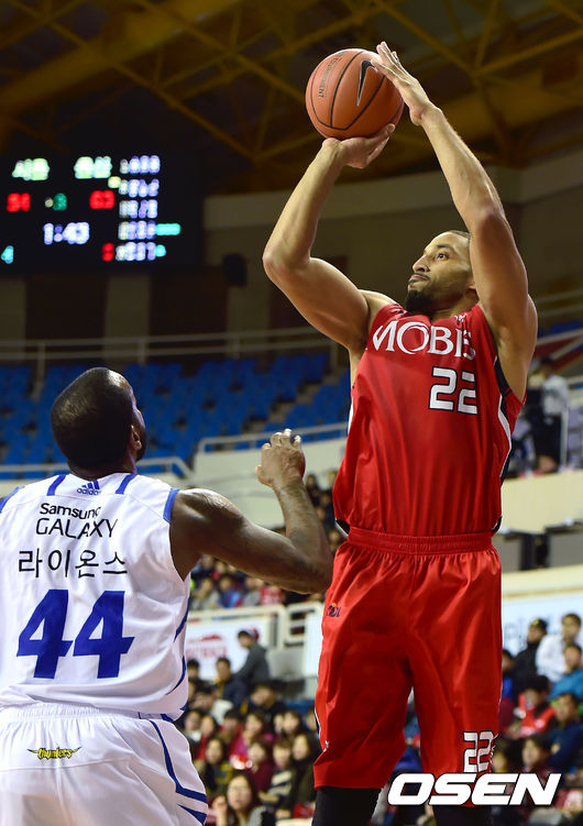 3쿼터 모비스 클라크가 점프슛을 시도하고 있다.