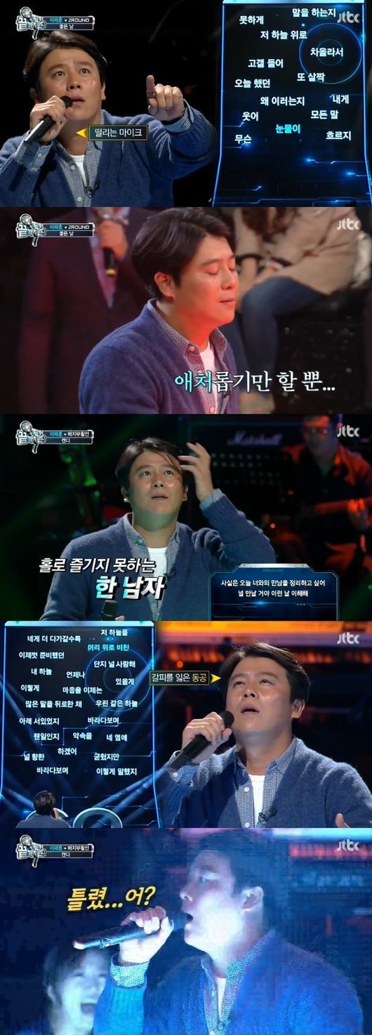 가수 이재훈이 국민 가요를 부르는 데 실패했다.