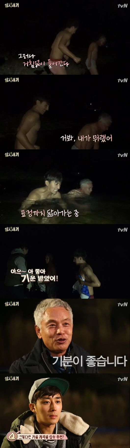 '삼시세끼’ 김영철과 손호준이 한 겨울 계곡물에 입수했다.