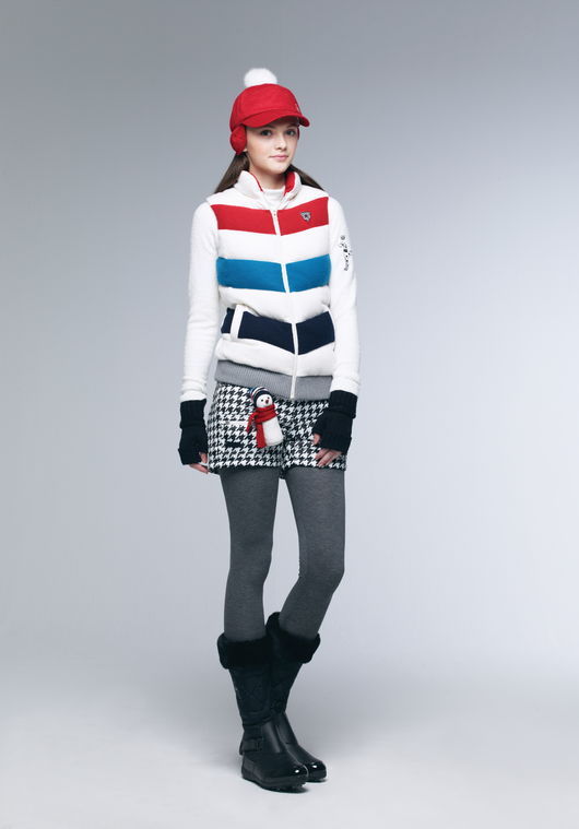 이번 12월 '헤지스골프'가 선보이는 '오프화이트 컬러블럭 구스다운 베스트'는 울과 우븐을 믹스 매치하여 유니크한 느낌을 살렸으며 컬러블록의 조화는 멋스러운 느낌을 준다.