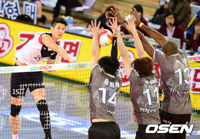 6일 오후 천안 유관순체육관에서 2014-2015 NH농협 V-리그 현대캐피탈과 OK저축은행의 경기가 열렸다.