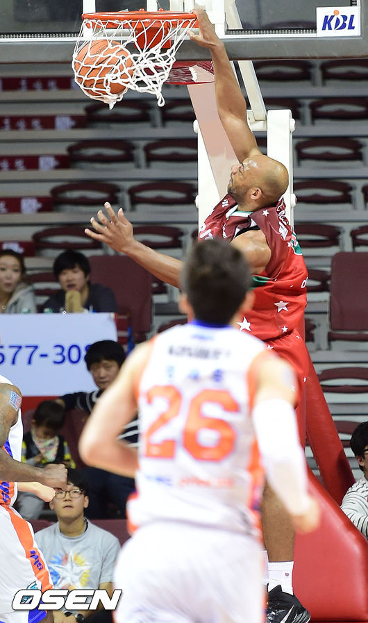 6일 오후 경기도 안양시 비산동 안양체육관에서 열린 '2014-2015 KBL 프로농구' 안양 KGC 인삼공사와 인천 전자랜드의 경기 2쿼터 KGC 윌리암스가 덩크슛을 성공시키고 있다.